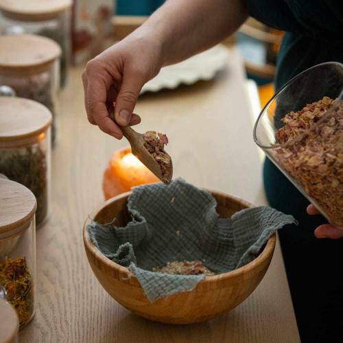 Le végétal est mis à l'honneur sous toutes ses formes : plantes séchées, hydrolats, huiles, argiles... Plongez en plein cœur des plantes ! L'intégralité du soin est réalisé sur mesure selon les besoins de votre peau et votre état émotionnel.
